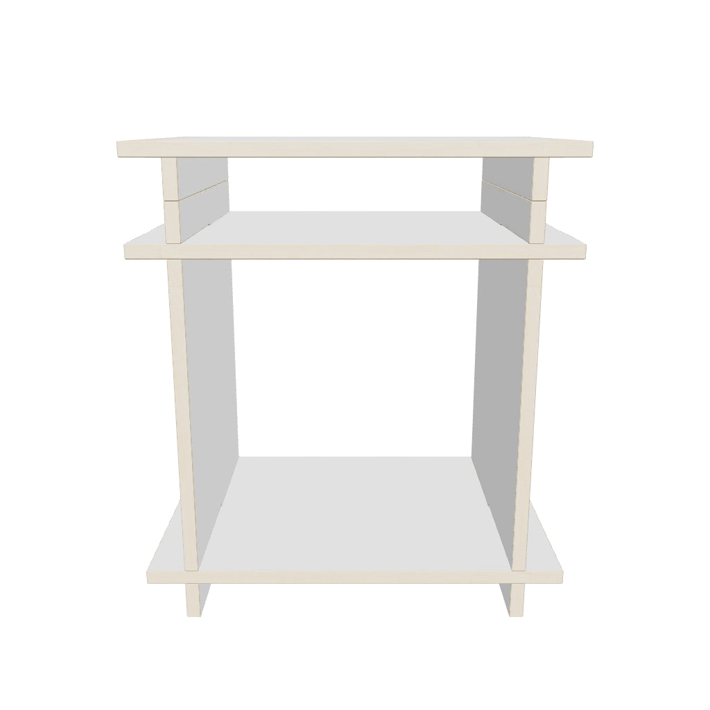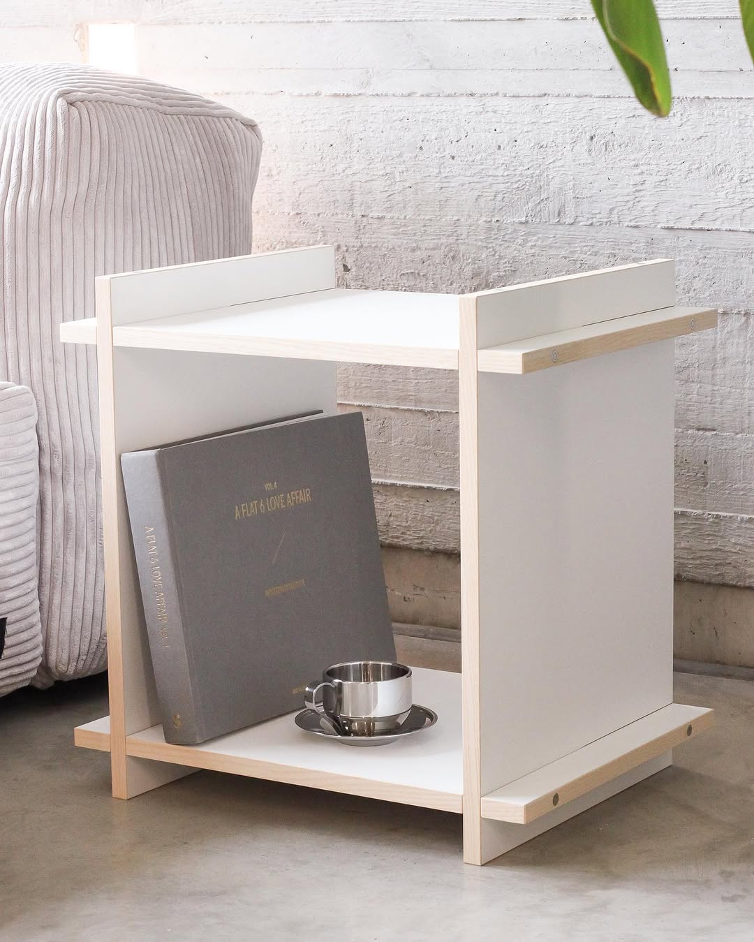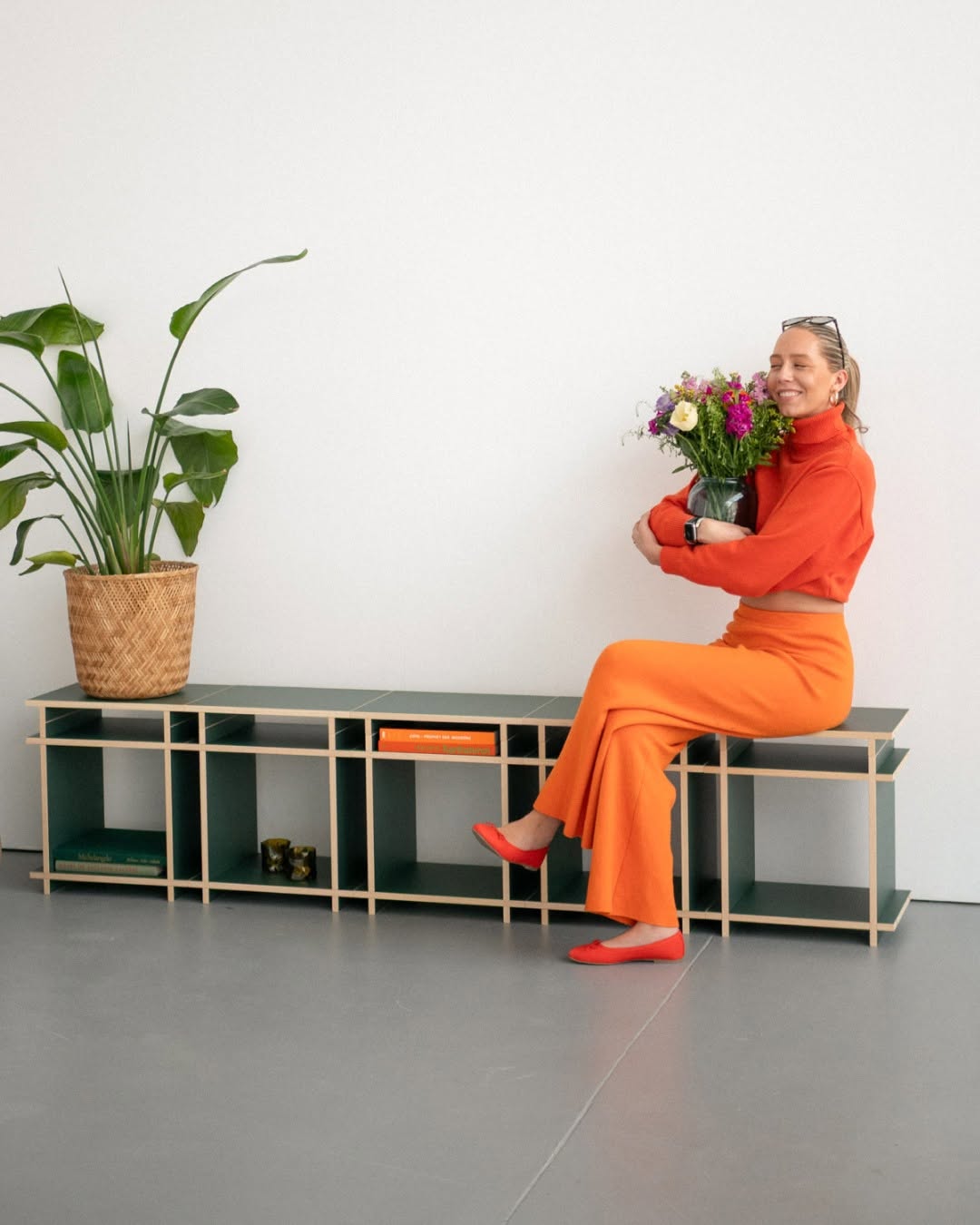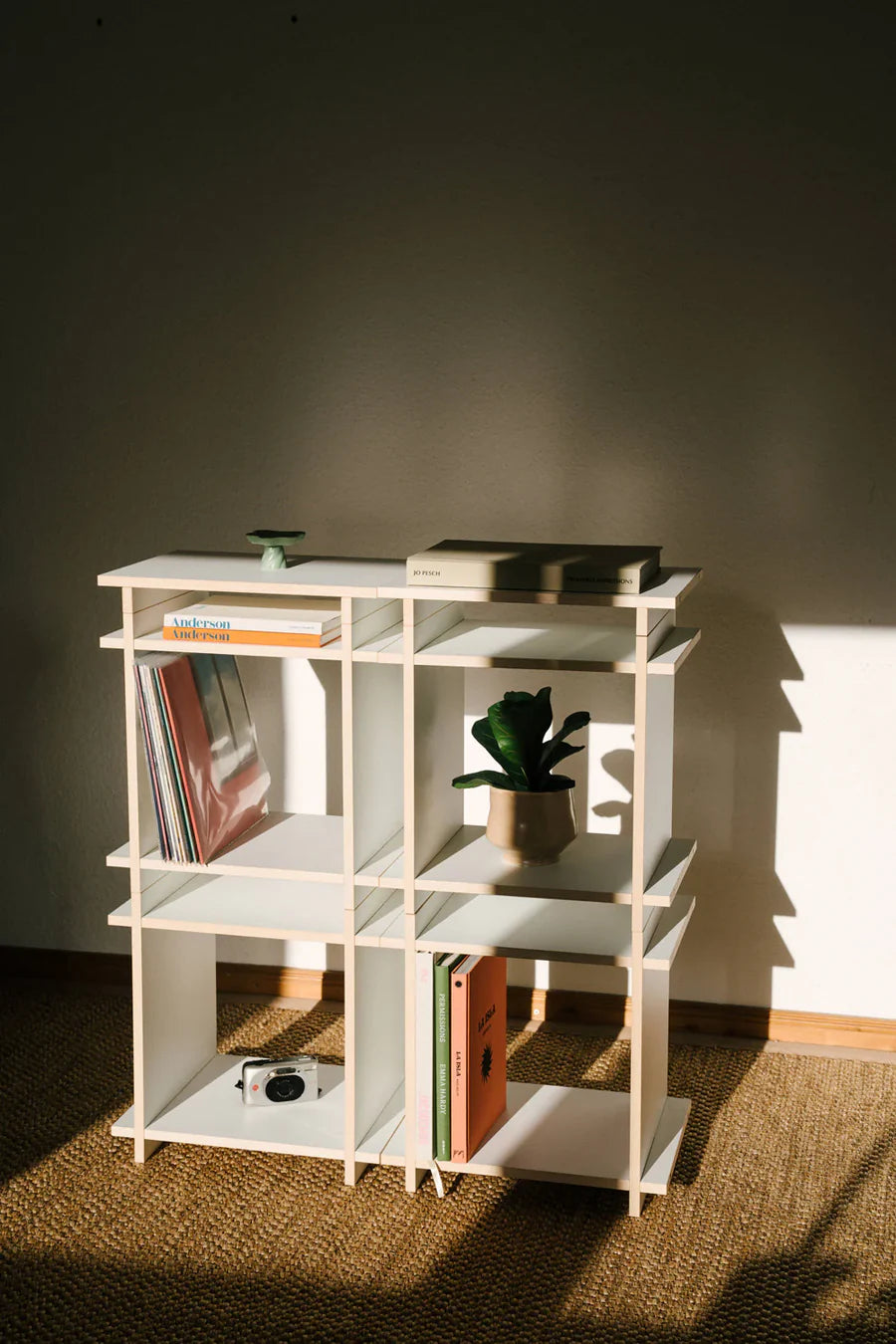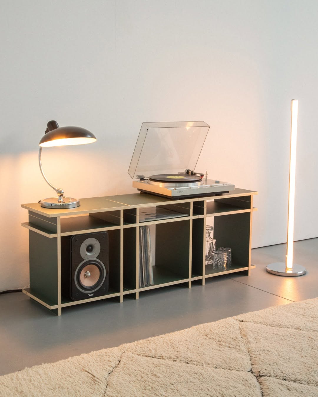 Two elements: Cubes & Caps. Invisibly connected by magnets. Designed for shelves, room dividers, sideboards, or bedside tables – modular, stable, timeless.
