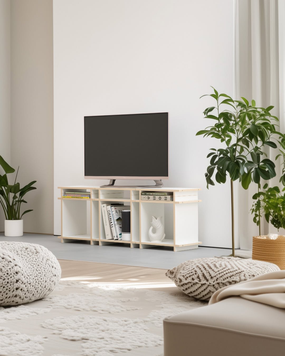 So books, decor pieces, lamps, or planters are completely fine. For heavier setups (like a media unit or large display), just add more cubes — the modular design distributes weight beautifully.